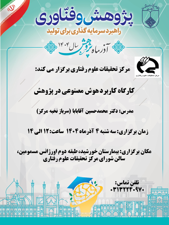 مرکز تحقیقات علوم رفتاری به مناسبت آذر ماه پژوهش برگزار می نماید:
